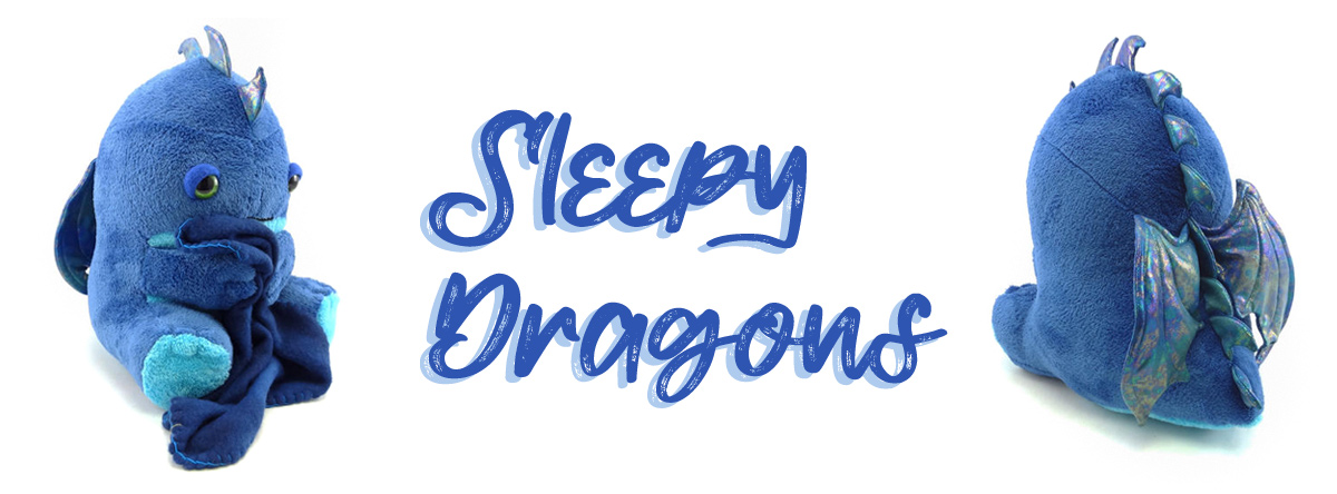 Sleepy Dragons are an original creation of hand made, one of a kind plush dragons. They are made with soft and cuddly ultra cuddle fleece bodies in a wide variety of colours with coordinating wings and spines in an array of sparkly or shiny materials. Each dragon also has a set of hand painted safety eyes. They are intended as plush decor items (bedroom guardians) and are not meant for regular handling by small children.